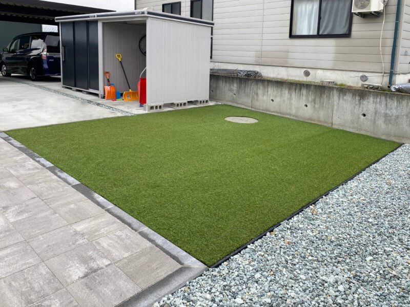 PICK UP WORKS HOME > 施工事例TOP > SimpleNaturalRe-Garden 173.東根市 I様邸 スタイル: SimpleNaturalRe-Garden 家族が喜ぶリガーデン! CoolNaturalSimple before 雑草でお手入れが大変だったお庭。 after コンクリートの舗装材を敷いて手入れの少ない快適なスペースに。 家族でBBQをして楽しめますね。 しっかりと防草シートを施して人工芝を敷けばお子様も安心して遊べます。 将来はシンボルツリーを植えるスペースも前もって確保。 Back Page